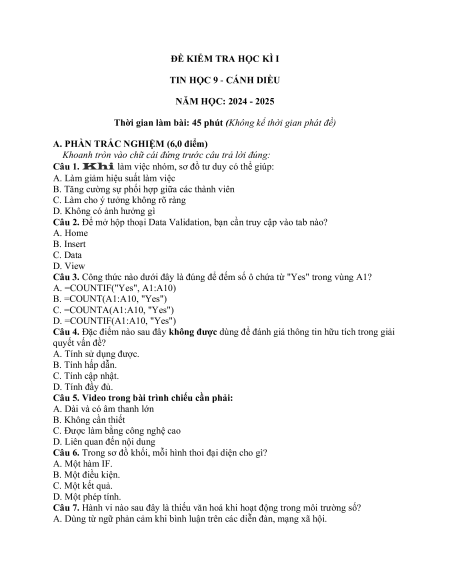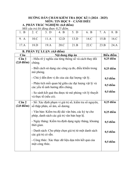 TIN HỌC 9 - CÁNH DIỀU NĂM HỌC: 2024 - 2025