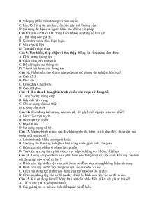 Câu 12. Hoạt động trên mạng nào sau đây dễ gây bệnh nghiện Internet nhất? A. Làm việc trực tuyến B. Học tập trực tuyến. C. Đọc tin tức