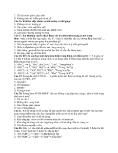 Câu 20. Trong hàm AVERAGEIF, nếu em không cung cấp sum_range, hàm sẽ tính trung bình của ô nào? A. Tất cả các ô B. Không tính trung bình C. Các ô trong sum_range D. Các ô trong range