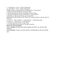 Câu 2. Để mở hộp thoại Data Validation, bạn cần truy cập vào tab nào? A. Home B. Insert C. Data D. View