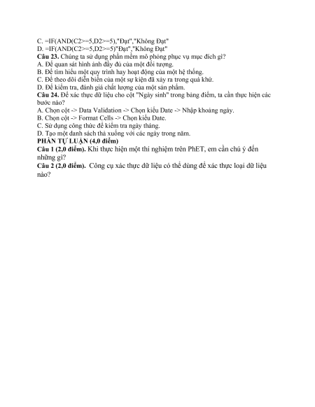Câu 2 (2,0 điểm). Công cụ xác thực dữ liệu có thể dùng để xác thực loại dữ liệu nào?