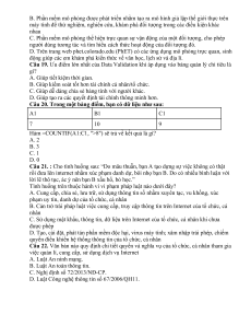 Câu 20. Trong một bảng điểm, bạn có dữ liệu như sau: A1 B1 C1 7 10 9