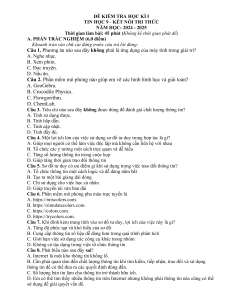 Câu 3. Tiêu chí nào sau đây không được dùng để đánh giá chất lượng thông tin? A. Tính sử dụng được. B. Tính hấp dẫn. C. Tính cập nhật. D. Tính đầy đủ.