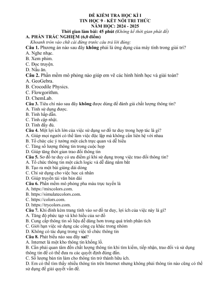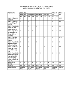 TIN HỌC 9 - KẾT NỐI TRI THỨC NĂM HỌC: 2024 - 2025