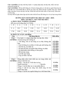 HƯỚNG DẪN CHẤM KIỂM TRA HỌC KÌ 1 (2024 - 2025)