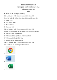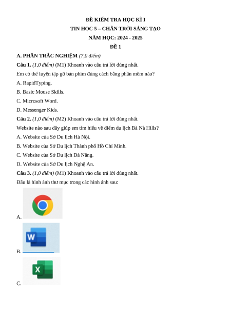 TIN HỌC 5 – CHÂN TRỜI SÁNG TẠO NĂM HỌC: 2024 - 2025 ĐỀ 1