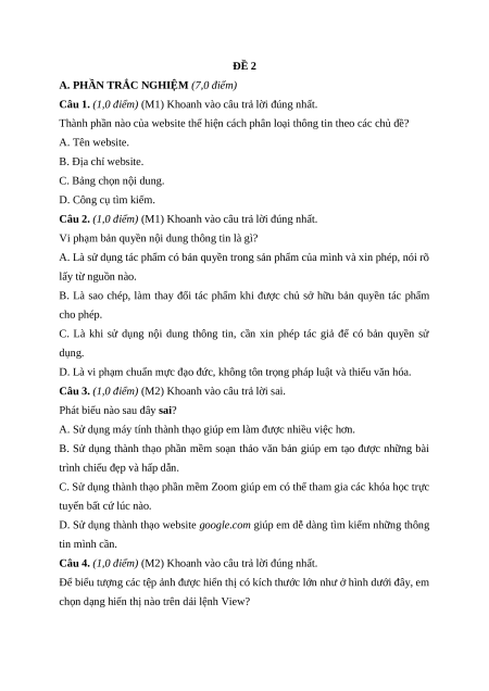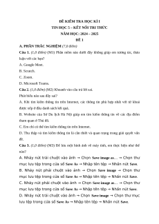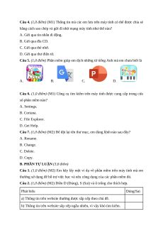 Câu 4. (1,0 điểm) (M1) Thông tin mà các em lưu trên máy tính có thể được chia sẻ