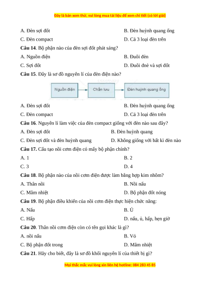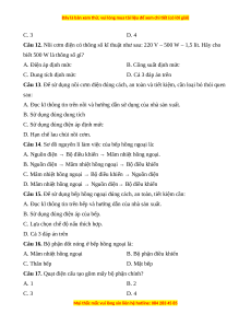 Câu 14. Bộ phận nào của đèn sợi đốt phát sáng? A. Nguồn điện B. Đuôi đèn C. Sợi đốt