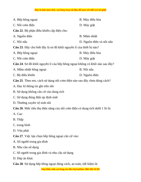 Câu 17. Cấu tạo nồi cơm điện có mấy bộ phận chính? A. 1 B. 2 C. 3 D. 4