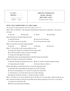 TRƯỜNG: …………. Năm học : 2024-2025 MÔN: GDCD - LỚP: 9 Đề gồm …. trang
