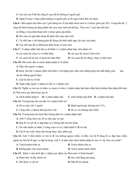 A. trách nhiệm pháp lí B. vi phạm pháp luật.