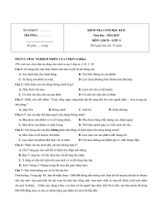 TRƯỜNG: …………. Năm học : 2024-2025 MÔN: GDCD - LỚP: 9 Đề gồm …. trang