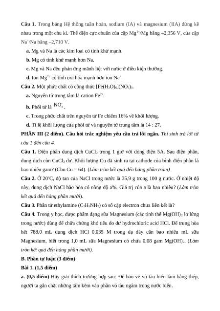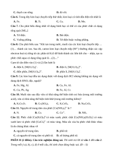 loại chuyển dãy thứ nhất 0,5đ tiếp thứ Sơ lược về 1 1 2a 1 B2.b nhất và phức chất 2b 1đ phức chất Sơ lược về sự 1 1 2c 2d hình thành phức chất của ion kim loại chuyển tiếp trong dung dịch Tổng số câu 8 4 0 2 4 2 Tổng số điểm 3,0 2,0 2,0 3,0 4,0 3,0 3,0 Tỉ lệ % 30 20 20 30 40 30 30 100