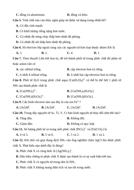 + Sơ lược về dãy kim loại chuyển tiếp thứ nhất và phức chất 14% chương trình ⇔