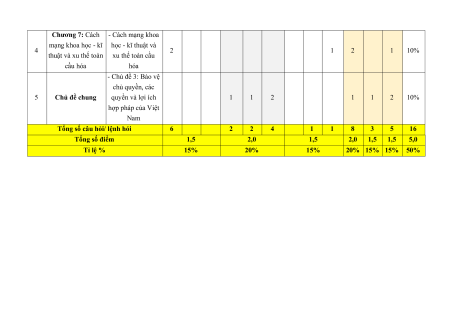 mạng khoa học - kĩ học - kĩ thuật và 4 2 1 2 1 10% thuật và xu thế toàn xu thế toàn cầu cầu hóa hóa - Chủ đề 3: Bảo vệ chủ quyền, các 5 Chủ đề chung quyền và lợi ích 1 1 2 1 1 2 10% hợp pháp của Việt Nam
