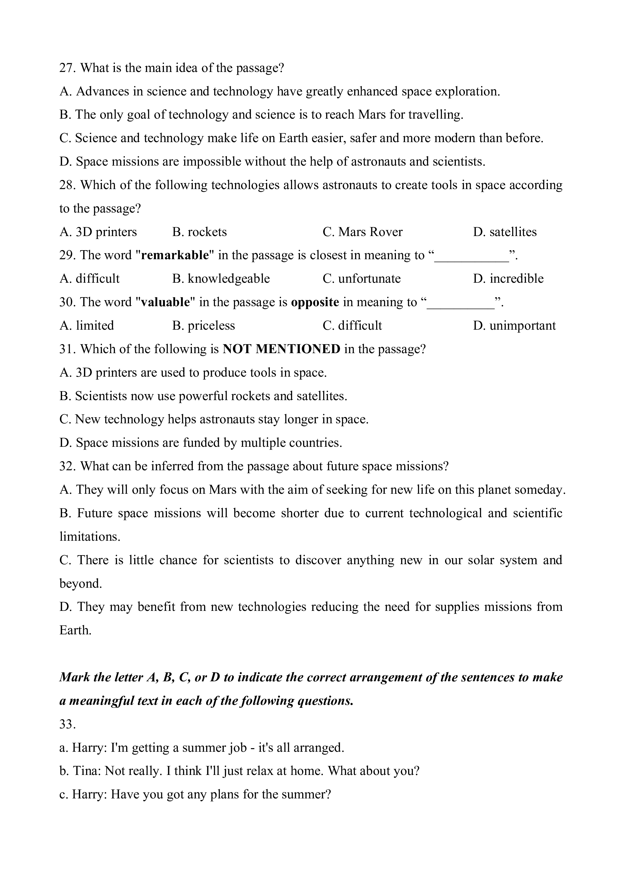Listen to Mr David talking about space science and technology and mark the letters A, B,