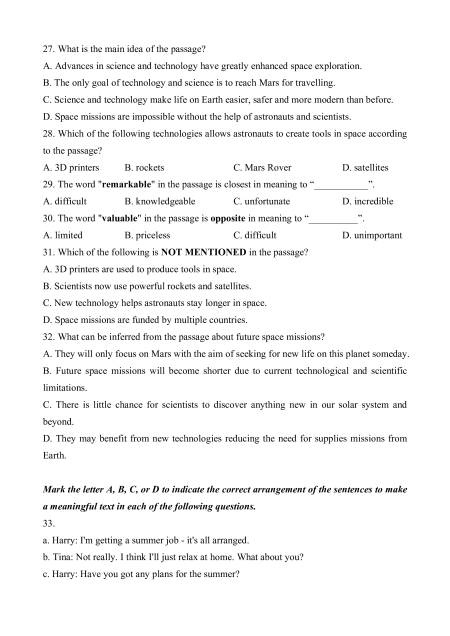 Read the following passage and mark the letter A, B, C, or D to indicate the correct