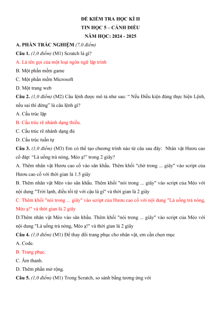 Câu 1. (1,0 điểm) (M1) Scratch là gì?