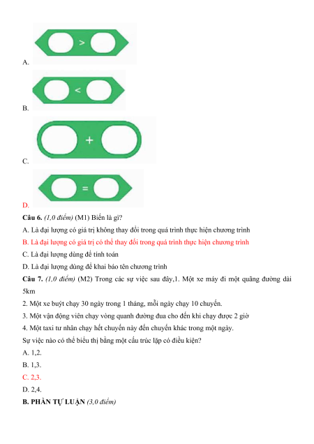 Câu 5. (1,0 điểm) (M1) Trong Scratch, so sánh bằng tương ứng với A. B. C. D.