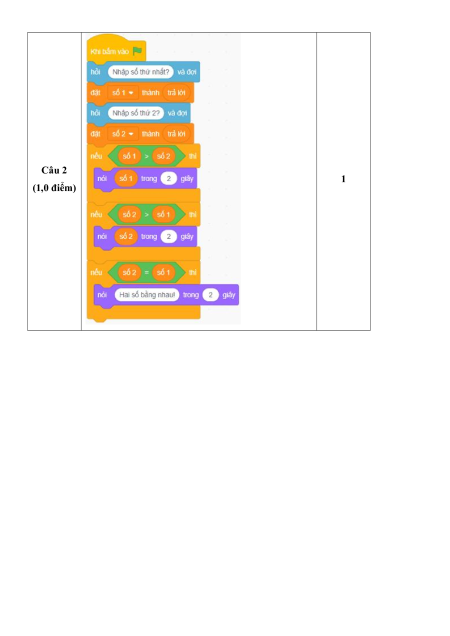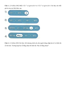 Câu 1. (2,0 điểm) (M2) Biến “số 1” có giá trị là 8 và “số 2” có giá trị là 4. Em hãy cho biết