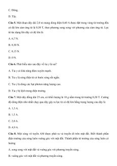 Câu 9. Giá trị cực đại của một dòng điện xoay chiều là 10 A, giá trị hiệu dụng của nó là A. 28 A. B. 3,1 A. C. 7,1 A. D. 14 A.