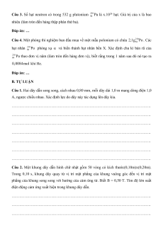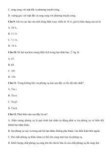 Câu 11. Trong không khí, tia phóng xạ nào sau đây có tốc độ nhỏ nhất? A. Tia . B. Tia . C. Tia +. D. Tia .