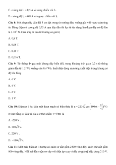 Câu 8: Một đoạn dây dẫn dài 5 cm đặt trong từ trường đều, vuông góc với vectơ cảm ứng