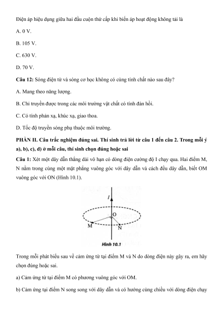 Câu 5: Đặt vào hai đầu cuộn sơ cấp của máy biến áp lí tưởng một điện áp xoay chiều có
