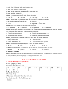 ĐÁP ÁN VÀ HƯỚNG DẪN CHẤM BÀI