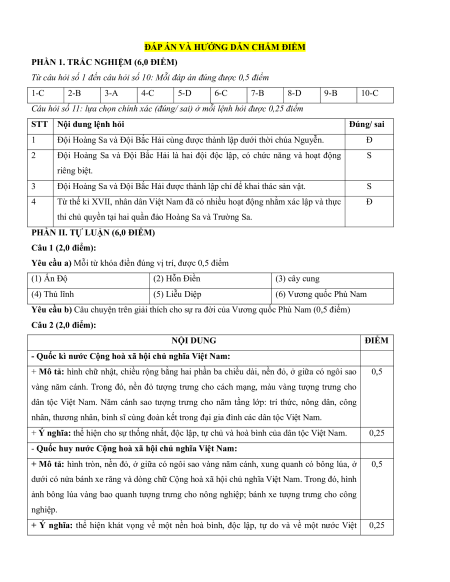ĐÁP ÁN VÀ HƯỚNG DẪN CHẤM ĐIỂM