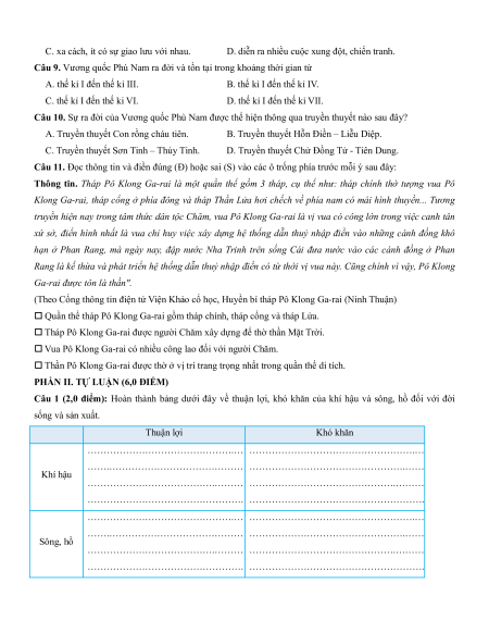 Câu 9. Vương quốc Phù Nam ra đời và tồn tại trong khoảng thời gian từ
