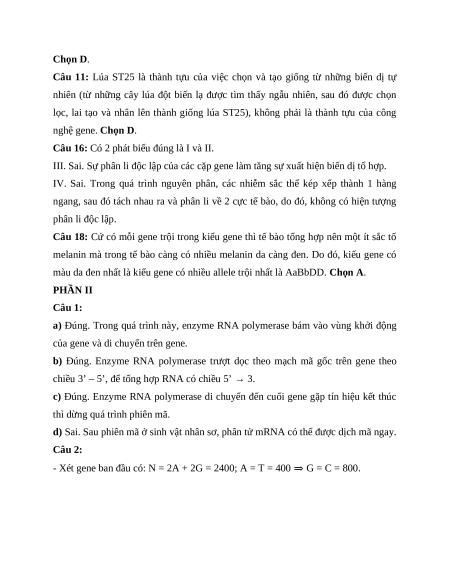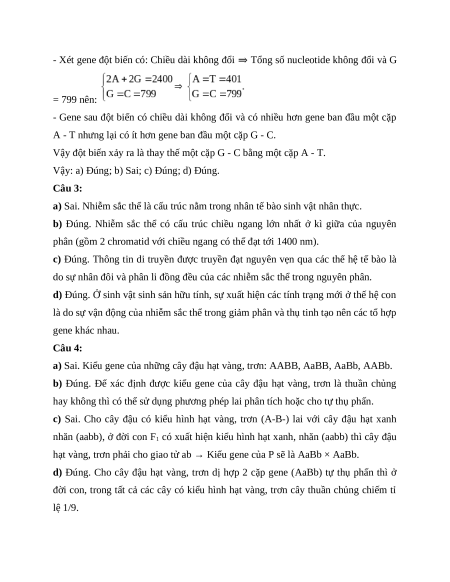 Câu 18: Màu da ở người do 3 cặp gene nằm trên 3 cặp nhiễm sắc thể khác nhau
