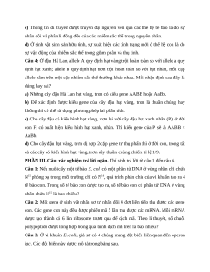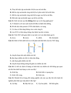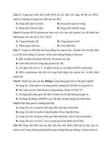 Câu 2: Thành phần nào sau đây không tham gia trực tiếp dịch mã? A. mRNA. B. tRNA. C. Ribosome. D. DNA.