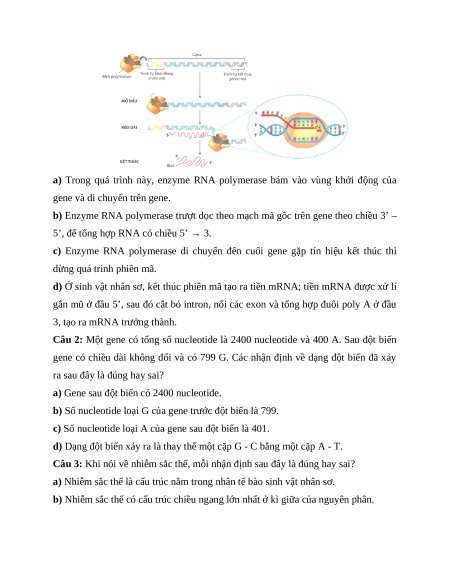Câu 1: a Hình dưới đây mô tả các giai đoạn phiên mã, hãy cho biết các nhận định