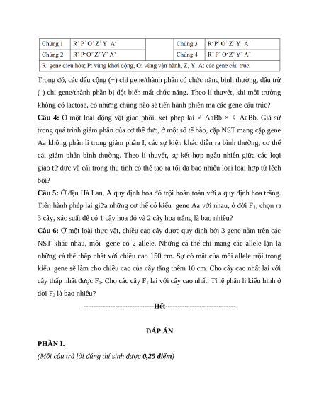 PHẦN I. Câu hỏi trắc nghiệm nhiều phương án lựa chọn. Thí sinh trả lời từ câu