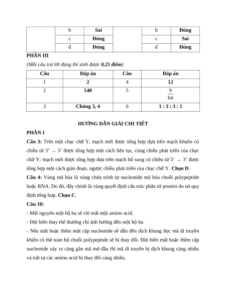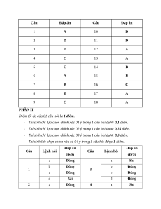 mỗi ý a), b), c), d) ở mỗi câu, thí sinh chọn Đúng hoặc Sai.