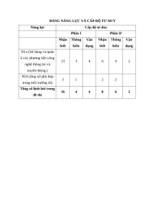 BẢNG NĂNG LỰC VÀ CẤP ĐỘ TƯ DUY Năng lực Cấp độ tư duy Phần I Phần II Nhận Thông Vận Nhận Thông Vận biết hiểu dụng biết hiểu dụng NLa (Sử dụng và quản