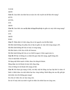 Câu 14. Giao thức nào dưới đây là giao thức điều khiển truyền tải dữ liệu trên Internet? HTTP. FTP.