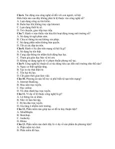 Câu 10. Phương án nào hỗ trợ và phổ biến tệ nạn trên mạng? A. Internet Banking. B. Mua sắm trực tuyến. C. Học online.