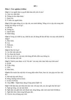 Câu 2: Thuật ngữ nào dùng để chỉ các thành phần vật lí của máy tính mà em có thể nhìn thấy và chạm vào? A. Phần mềm (Software). B. Chương trình máy tính. C. Phần cứng (Hardware). D. Dữ liệu.