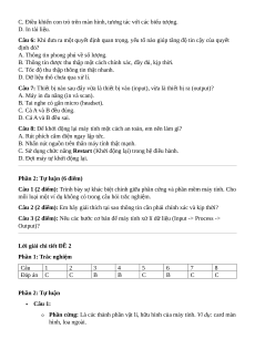 Câu 1 (2 điểm): Trình bày sự khác biệt chính giữa phần cứng và phần mềm máy tính. Cho