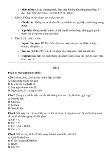 Câu 2 (2 điểm): Hãy mô tả quá trình xử lí thông tin trong một ví dụ đơn giản trong cuộc