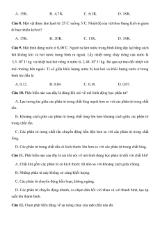 Câu 8. Một vật được làm lạnh từ 25C xuống 5 C. Nhiệt độ của vật theo thang Kelvin giảm đi bao nhiêu kelvin? A. 15 K. B. 20 K. C. 11 K. D. 18 K.