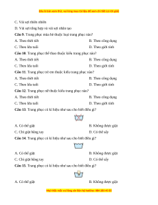 Câu 10. Trang phục thể thao thuộc kiểu trang phục nào? A. Theo thời tiết B. Theo công dụng C. Theo lứa tuổi D. Theo giới tính