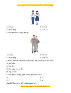 Câu 19. Sử dụng trang phục có kiểu dáng vừa vặn, màu sắc trang nhã lịch sự khi: A. Đi học B. Đi chơi C. Đi lao động D. Đi lễ hội