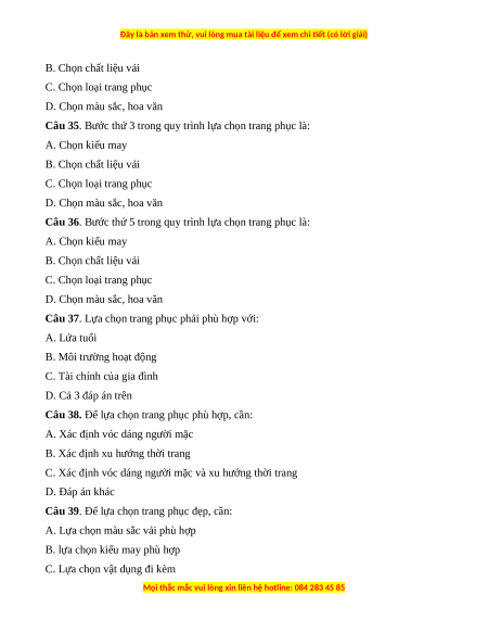 Câu 17. Lựa chọn trang phục căn cứ vào: A. Vóc dáng cơ thể B. Lứa tuổi