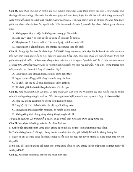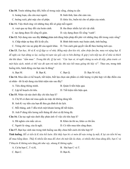Câu 10. Trước những thay đổi, biến cố trong cuộc sống, chúng ta cần