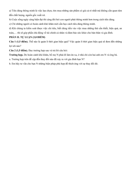 Câu 4. Để quản lí thời gian hiệu quả, mỗi người cần