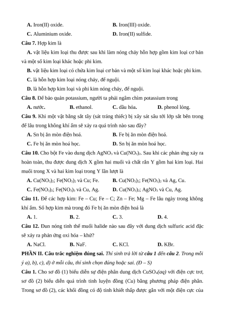 vệ nên được sử dụng rộng rãi làm dây dẫn điện ngoài trời. Kim loại X là A. iron. B. silver. C. copper. D. aluminium.