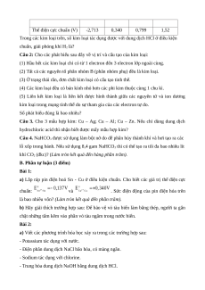 Câu 5: Kim loại X là kim loại nhẹ, dẫn điện tốt và có lớp màng oxide bền vững bảo